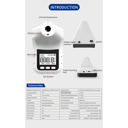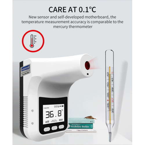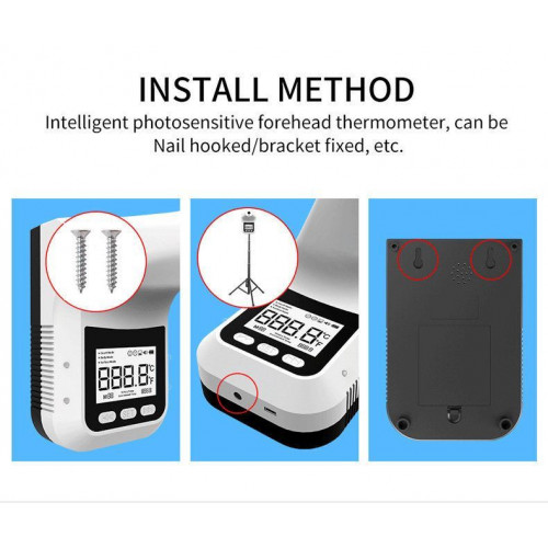7.智能感光額頭體溫計,無需手持,可懸掛/雙面膠貼/支架固定等。