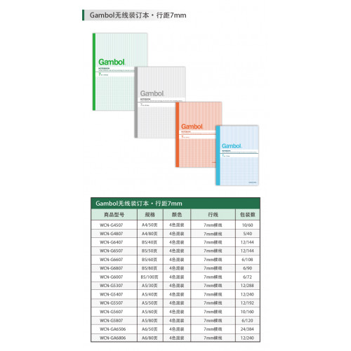 GAMBOL WCN-G4807 A4 單行簿(80頁)