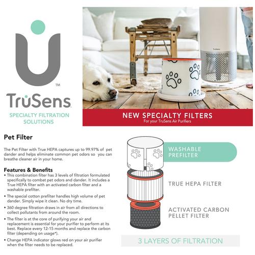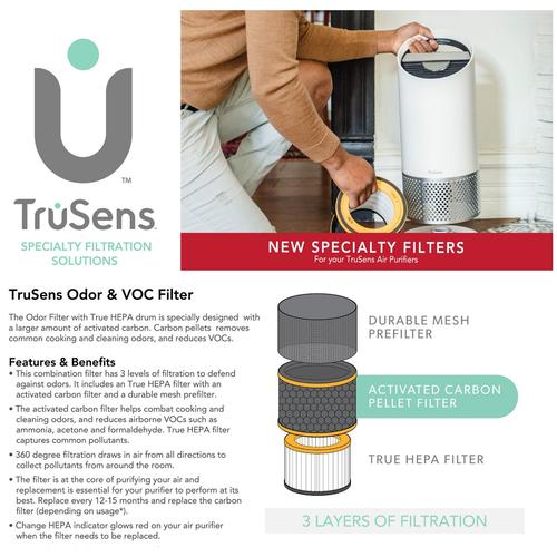 Contemporary air purifier combines filtration with a unique approach to delivering cleaner air. Sensing the air around you, TruSens automatically adjusts to the conditions of your air and is engineered to distribute purified air more effectively.
