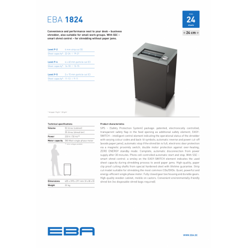 德國 EBA 1824S 辦公室型碎條狀碎紙機(22-24張70gsm)