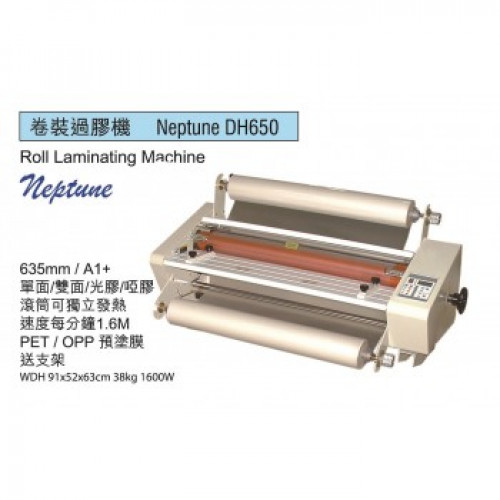 Neptune 650卷 裝 過 膠 機 A1+(熱滾筒)數碼印刷, 海報, 一般印刷品● 光膠、啞膠、熱覆膜、冷裱、裱裝、單面、雙面● 過膠闊度至 635 mm / A1● 0-140℃溫度選擇● 過膠速度每分鐘200 - 1600 mm● 過膠厚度5mm● 手動或自動過膠● 緊急回捲按鈕● 卷芯: 25/50mm(1吋,2吋)● 1年市區上門保用● 91×52×63cm (連支架) / 38kg / 1600W