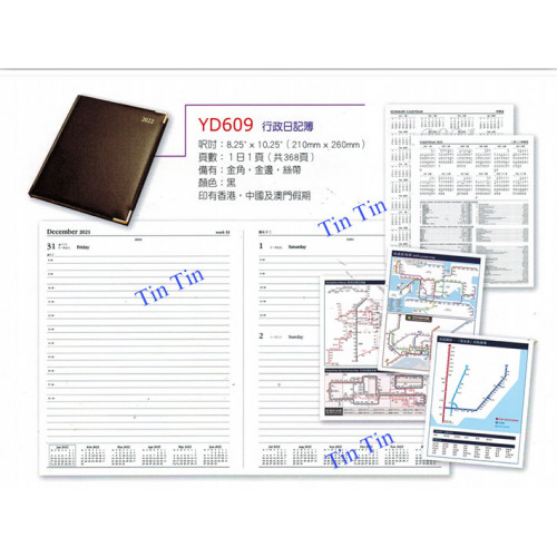 ● 用70克高級書紙,印1C+1C,內有中、港及國際假期等其它資料,3面轆金或銀邊