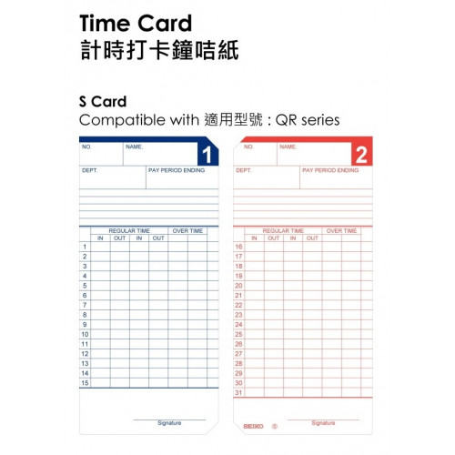 日本 SEIKO S Card 原裝白色雙面工咭 (100張/盒)
