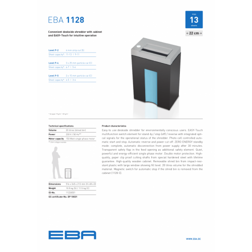 EBA 1128S (4mm) 桌邊型碎紙機(代替1123S)